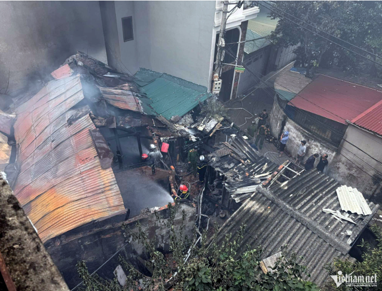 Sau khoảng 30 phút, đám cháy cơ bản được khống chế. Tuy nhiên, phần mái tôn và kết cấu căn nhà bị đổ sập. Khói đen bám đặc các nhà xung quanh.