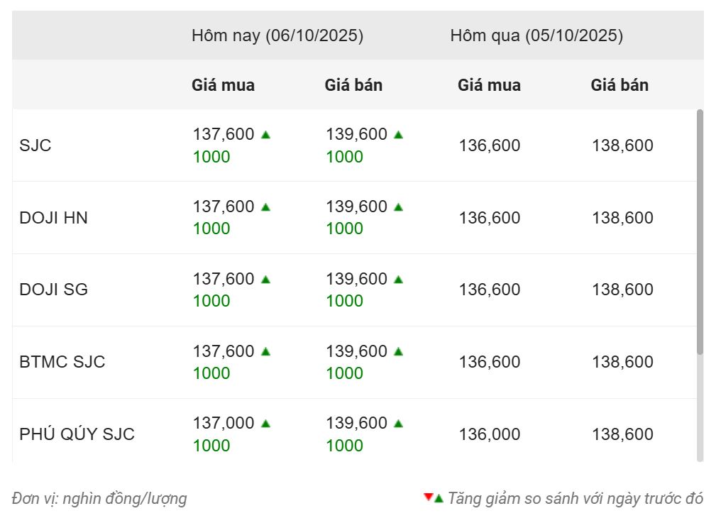SJC: mua 136,600,000 ₫ / bán 138,600,000 ₫
